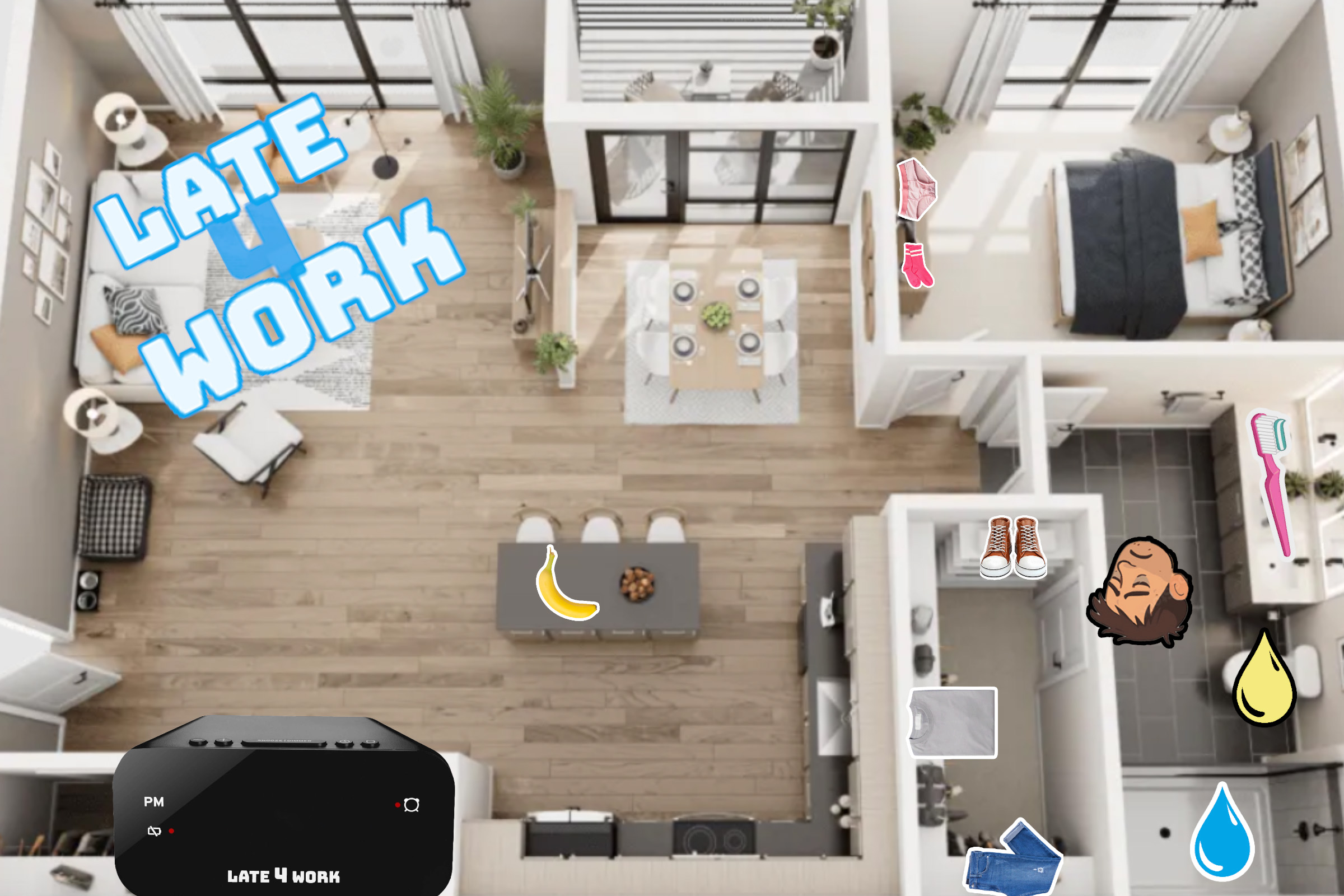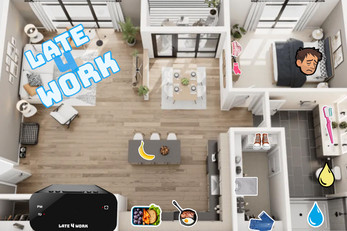 Last night was a little too fun! As you awaken, you notice its 8:30 a.m. and you have to be to work by 9 a.m.. You have 2 minutes to get ready and get to the car. Do whatever you can to get out of the house quickly but choose carefully. Each item picked up adds more time to the clock. Do you have what it takes in this race against time? Or will today be the day you get fired? The choice is yours!
